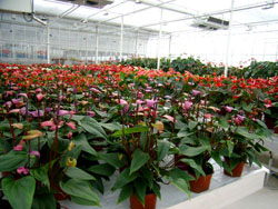 到2008年底,全市花卉種植總面積5.73萬畝(全國1162.5萬畝),其中:現代化智能溫室1404畝,日光溫室、大棚9060畝等。生產鮮切花()4904萬支,其中:月季1733萬支、百合799萬支、菊花622萬支、鮮切葉89萬支;生產盆栽植物12586萬盆,其中盆花11766萬盆(比2007年6562萬盆增加79%),盆花中花壇花卉4265萬盆、鳳梨類27萬盆、蘭花類179萬盆、花燭屬類99萬盆;生產觀賞苗木1268萬株、草坪941萬平方米、干燥花495萬枝。