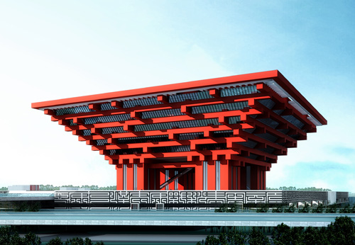 上海世博局有關負責人表示,最初設想的“中國紅”為一種選色。今年3月底,中國美院副院長宋繼明教授剖析了北京天安門城墻、故宮博物院的紅色,是通過其墻、柱、屋檐和國徽上許多不同深淺的紅色配置,才組成了外觀視覺上統一和諧的紅色;谕瑯拥脑恚袊^特殊的斗拱造型和核心筒,如果采用單一的紅色,那么在不同的光線光照及其折射下,在不同的視覺高度下,在白晝自然光和夜間燈光投射等條件下,所產生的外觀視覺效果是會產生差異的。