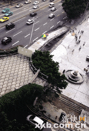記者觀察發(fā)現(xiàn),被拆的兩處橋腳長約三十米,一直延伸到粵財(cái)大廈的南門和東門,門與橋腳之間有十多米人行道空間。而天橋其它三個(gè)方向的5個(gè)橋腳,與人行道之間只有不足5米的距離。“如果拆橋是為了走路方便,那為什么其它幾個(gè)橋腳不拆呢?”街坊胡阿姨說,可能原來的橋腳擋了大廈的財(cái)路、風(fēng)水才被拆的。