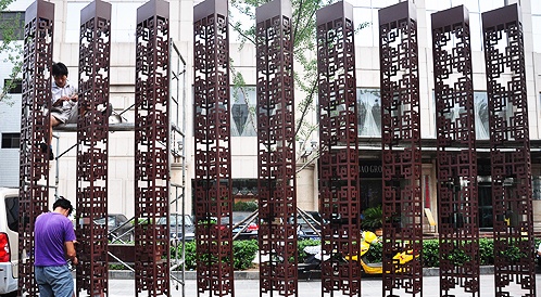 8月5日,路過山西省城迎澤大街時看到,工人師傅們正在新置的景觀燈架上安裝景觀燈。據現場負責人介紹,為展現迎澤大街的靚麗夜色,太原市政府近期正對迎澤大街沿街景觀燈進行規劃改造。這些古色古香的燈架高4米,每9個為一組,目前已經安裝400余個。