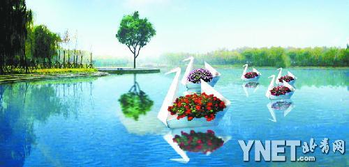 全市國慶游園活動十大重點公園之一的海淀公園將用50萬盆鮮花、150面國旗、30個高空彩球,通過“四區一線”主題花壇、花卉的布置,營造花團錦簇的園林環境。其中,公園入口處將布置“豎琴樂章”景觀花壇,而“長號頌歌”是中心主體主花壇,由6個6到9米高的長號組成,并配以“歡樂頌”第一小節五線譜作為配飾。