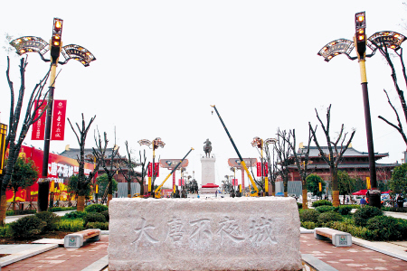 西安曲江新區建設的大唐不夜城,將被打造為重現大唐盛世風采的文化商業步行街區。貞觀文化廣場是該項目的核心部分,由西安大劇院、西安音樂廳、曲江美術館和曲江太平洋影城四組文化藝術性建筑組成。該廣場采取立體式設計,以地面層的四個下沉式廣場把地面和地下的活動場所有機聯系起來。貞觀文化廣場在總體設計中,四個主體建筑以正對大雁塔的南北軸線為空間對稱關系,主體空間高度接近的電影院與美術展館布置在用地的北部,兩者的大屋頂均設計為重檐歇山;而音樂廳和大劇院布置在用地的南部,兩者的大屋頂均設計為重檐廡殿。目前,電影院、美術館和音樂廳的硬件設施已經到位并通過了驗收。據了解,早在2005年曲江新區就開始籌劃論證大唐不夜城項目。2006年,大唐不夜城項目被確立為省市兩級重點建設項目, 2007年7月8日,陜西省委常委、西安市委書記孫清云、西安市市長陳寶根等領導為大唐不夜城貞觀文化廣場等三大項目奠基;12月31日,西安音樂廳、曲江太平洋影城、曲江美術館等三大文化場館順利實現主體封頂。2008年12月初,世界500強企業、國際投資大鱷美國華平投資集團成功進駐大唐不夜城,建設西安新樂匯;2009年初,西安新樂匯成功招商,4月,大唐不夜城點亮工程啟動,5月,景觀大道開始改造建設……