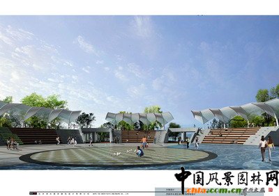 和諧廣場(chǎng)延續(xù)了"天圓、地方"的發(fā)展理念,構(gòu)成了"人和"的意境,一方面體現(xiàn)了"天、地、人"的和諧統(tǒng)一,另一方面體現(xiàn)了國(guó)內(nèi)外參展城市歡聚一堂的融洽氛圍,形成了入園后景觀序列的高潮。和諧廣場(chǎng)為下沉式廣場(chǎng),四周是階梯式的觀演臺(tái),可容納觀眾,中間是圓形的下沉廣場(chǎng),可作為演出舞臺(tái),這里是園博會(huì)期間舉辦活動(dòng)、進(jìn)行演出的主要場(chǎng)所。觀演臺(tái)外側(cè)設(shè)有紀(jì)念品銷(xiāo)售、餐飲等綜合服務(wù)設(shè)施,是園內(nèi)主要的購(gòu)物、休憩場(chǎng)所之一。