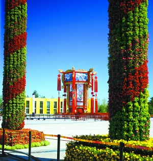 北京館內花卉展品布置設計,突出北京特色、體現時代氣息,以植物營造景觀,充分展示花卉展品的特點。在整體布局中結合特裝風格,借鑒北京四合院及皇家花園形式,采用對稱布局形式,各展示區域以米黃色為主色調,以繩藝結合框架形式與菖蒲材等劃分空間。整個展館宛如一個花園庭院,層層院落,形成一個由熱烈絢麗到安靜雅致的過程。