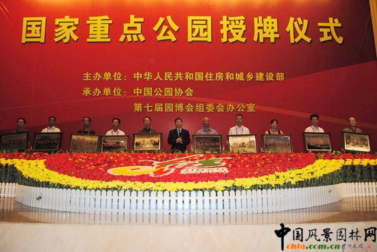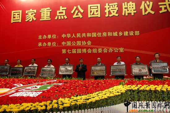 作為第七屆中國(濟南)國際園林花卉博覽會期間的一項重要活動,該儀式由住房和城鄉建設部城市建設司司長陸克華主持召開。住房和城鄉建設部副部長仇保興,中國科學院院士、中國工程院院士、中國規劃學會理事長周干峙,中國風景園林學會理事長陳曉麗,中國公園協會副會長林芳友,中國風景名勝區協會副會長曹南燕,住房和城鄉建設部城市建設司副司長陳蓁蓁等領導出席了此次授牌儀式。參加活動的還有各省(市、自治區)住建廳、園林局領導和公園代表。