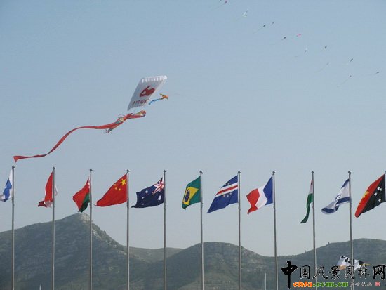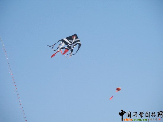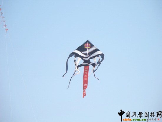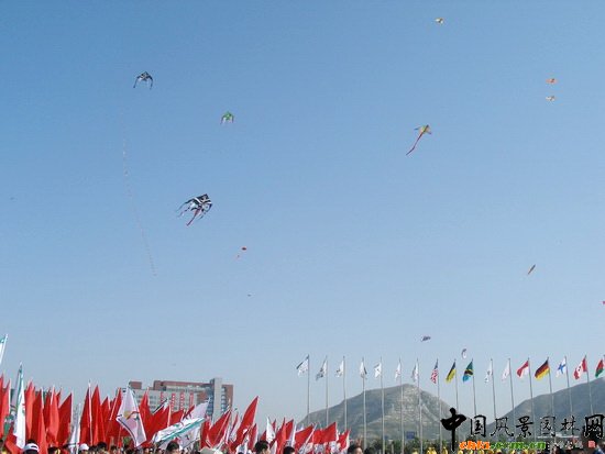 具有山東地方特色的風(fēng)箏飛揚在泉韻廣場上方:
