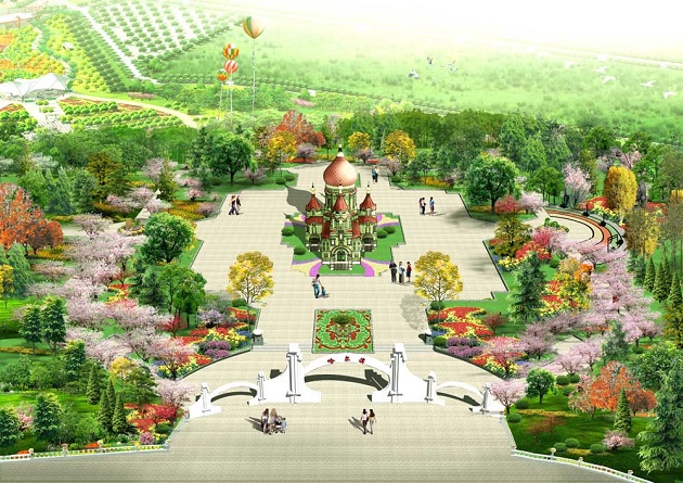 哈爾濱展園主要以植物造景取勝。植物景觀著重體現哈爾濱特色和濃郁的地方文化。五色草是哈爾濱園林發展的標志性植物,無論從創作、工藝還是規模上都處于世界的領先水平,在本方案中以五色草教堂為主體,前后和兩側布置有以五色草為材質的立體的立體花壇做襯景,同時滿足立體和平面上的層次效果,將索菲亞教堂的大氣和五色草的精美融為一體,向世人展示哈爾濱獨特的園林風貌。造景選用了云杉、黑皮油松、白樺、花楸、榆梅、紫丁香、藍丁香、佛頭花、柞樹和暴馬丁香等鄉土樹種作為基調,并選用了的銀杏、雪松、香花槐、大葉女貞、紅楓、黃櫨、大葉黃楊等當地植物作為背景林和景觀樹。主要配置形式是用綠籬圍合中心廣場的外圍綠地,與規則式的空間布局和諧一致,綠地中的植物配置以自然式栽植為主,選用藍丁香、重瓣白丁香等哈爾濱特色植物作為點綴。在西北方向的綠地中用水臘籬圍合并多栽植香花槐,在開花時節,成片的香花槐林同時綻放花香,景觀效果壯觀、盛大;在東南方向的綠地中多栽植高大喬以為中心廣場上的人們提供樹蔭乘涼。在季象變化上,選用了幾種季象特點鮮明的植物集中體現春、夏、秋、冬不同季節的美麗。如在環路四周配置有櫻花,在春季整條環路都會籠罩在櫻花的浪漫下;而西北綠地中的香花槐則形成了密林的效果,夏季花開尤為壯觀;秋季則有元寶楓、五角楓等變葉植物點綴,紅葉似火、秋意濃濃;東北方向的綠地中多栽植有雪松和云杉,形成疏林草坪的效果,為冬季景觀增添了綠意和白雪青松的氛圍。植物配置不僅體現了人性化,還強調對景、襯景、障景的應用,喬灌木結合,配以成坪的花卉,高低錯落,與索菲亞教堂形成相互襯托的關系,達到了生態自然又大氣雅致的效果。