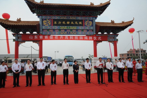 姜偉賢、張引潮為山東省省級花卉高科技園揭牌。