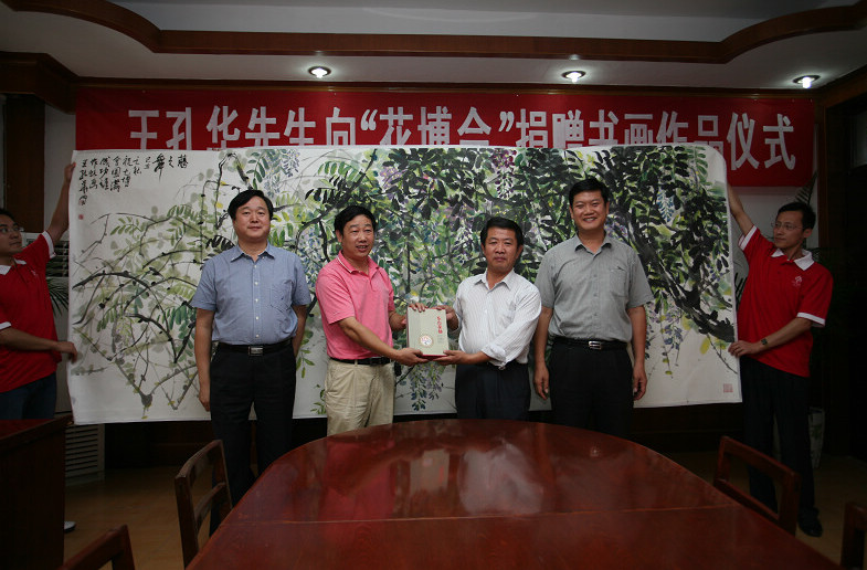 9月24日上午,青州籍中國著名書畫家王孔華先生向“七博會”捐贈了大型書畫作品《藤之舞》,以表達對家鄉的熱愛和對“七博會”勝利召開的祝愿,青州市領導陳俊強、于瑋亭、孟慶剛出席了捐贈儀式。