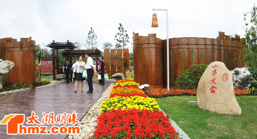 在此次園藝博覽會上無錫展園的主題為“山亭文會”,取自明代無錫著名畫家王紱的代表作。整個展園地形蜿蜒,道路曲折迂回,景觀視點豐富、多變,結合無錫展園所處地勢山水交融的優勢,以現代的手法描繪出畫中山林雅集的盛事,營造了“步移景異”的景觀氛圍,成為生態園里的“山水畫”,由景入畫,由畫入詩,在賞、玩、游、品、鑒的過程中體味傳統文化和現代風格,帶給人一種視覺沖擊和精神享受。