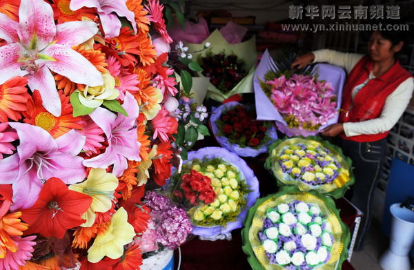 “十一”長假期間,四季如春的云南昆明鮮花市場生意紅火,“春城”市民和外地游客紛紛來到花市買花,七彩玫瑰、大花蕙蘭和香水百合等品種的鮮花供不應求。