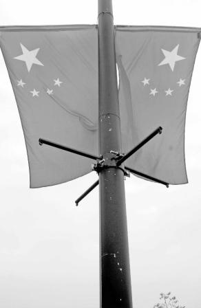 記者昨天來到沈半路,這是一條剛翻新拓寬的道路,燈具市場、建華市場等批發市場人流熙攘。道路兩旁紅旗招展,節日氣氛依然濃厚,可是,本來懸掛在鐵架上的慶典花籃卻少了很多。鐵架上原本懸掛了四個花籃,組合在一起是一道美麗的風景,可現在,有的鐵架上花籃被全部取走,有的只剩下一兩個。