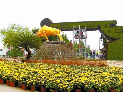 10月18日,第27屆中國開封菊花花會將舉行。11日,記者在該市龍亭公園、大梁路、金明廣場等地看到,大量的鮮花盆展已經開始擺放(如圖),布展工作預計14日全部結束。