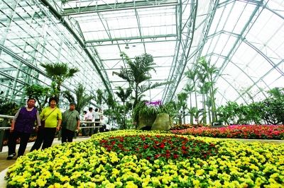 南山植物園,市民正在新近開館的溫室植物館參觀 記者 鄒飛 攝