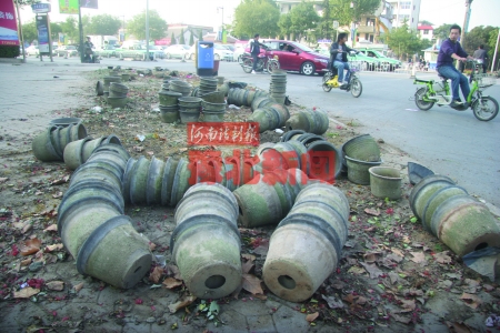 25日15時30分許,在安陽市東風路與文峰大道交叉口,安陽市園林局的幾名工作人員忙碌地將擺放在地上的花盆往旁邊園林車上搬。但是眼前一幕讓他們心疼不已,很多鮮花被人連盆偷走,有的則是鮮花被采,花盆成了碎瓦片。