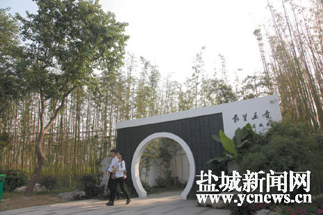 “風來自成清籟,雨打更發幽音。主入口處設計將傳統粉墻黛瓦元素與現代造園手法巧妙揉合,是整個鹽城園的“點睛之作”。展園主題立意選自《詩經》對的描寫“風來自成清籟,雨打更發幽音”。