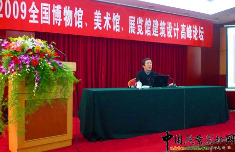 中國風景園林網  為促進中國博物館、美術館、展覽館建筑設計的不斷完善和發展,深入探討與之相關的涉及文化、功能、美學、建筑材料等多重問題,并為廣大建筑設計師提供行業探討與交流的平臺,"2009博物館、美術館、展覽館建筑設計高峰論壇"于11月7日—9日在北京國誼賓館舉行。