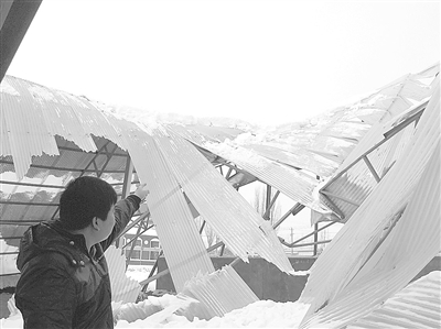 采訪中,記者了解到,塔橋村花卉基地的另外幾棟大棚同樣也被這場大雪壓塌,而且這些新建的大棚都沒有完工。工地負責人納先生稱,由于大棚的頂面設計成了波浪形,中間的凹槽主要是用來排水的,但沒有想到連續的降雪,使得中間的凹面堆積了大量的雪水,才造成了大棚的垮塌。