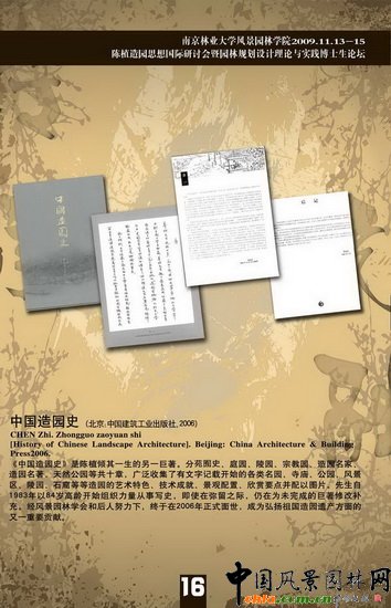 中國風景園林網 2009年11月14日,陳植造園思想研討會暨江蘇省園林規劃設計理論與實踐博士生論壇在南京林業大學召開。此次會議的主題是"傳承·交融"。江蘇省建設廳、教育廳領導和來自國內外的專家學者及風景園林院校師生共計500余位參加了此次會議。