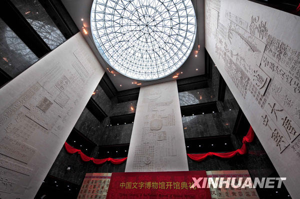 中國文字博物館館內的四壁采用浮雕手法展示各種刻畫、符號和文字。