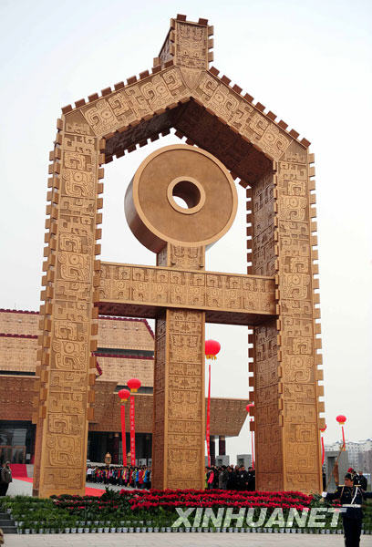 坐落在中國文字博物館廣場上高18.8米的“字坊”,整體造型采用了甲骨文“字”的寫法。