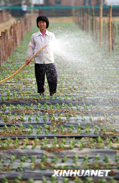 11月30日,一位花農(nóng)正在給菊花苗澆水。新華社記者 郭程 攝