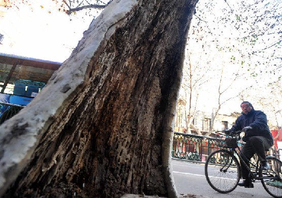 南京市園林局綠化處一位工作人員談起行道樹養護中存在的困難,也是皺眉苦笑。他介紹說,市區的法國梧桐大都是行道樹,常年生活在汽車廢氣中,土壤質量、陽光照射都受到限制,生存環境不如生長在野外的法國梧桐,中山陵一帶的法桐不少樹齡都超過80年,而市區里年輕的樹反而先進入生長衰退期,楊公井的幾棵病樹更是其中的典型。目前,每逢風雪天氣,白下區綠化所都會嚴密監視,一旦出現問題,立即采取措施。