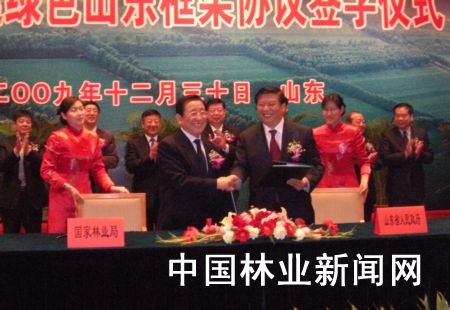 12月30日,國家林業(yè)局、山東省人民政府合作共建綠色山東框架協(xié)議簽約儀式舉行。國家林業(yè)局局長賈治邦、山東省省長姜大明分別代表雙方簽字。協(xié)議提出合作共建的發(fā)展目標(biāo)是,力爭建成城鄉(xiāng)一體、布局合理、結(jié)構(gòu)優(yōu)化、功能完備、林權(quán)明晰的現(xiàn)代林業(yè)體系。