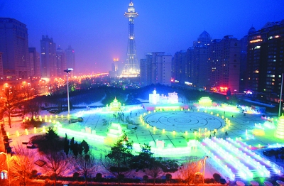 在哈爾濱市南崗區(qū)長江路附近的一個小廣場內(nèi),數(shù)十座新建的冰燈點亮,與周圍的彩燈交相輝映,將整個街區(qū)裝點得十分亮麗。據(jù)了解,為迎接冰雪節(jié)到來,省城街頭建成了大量的冰雪景觀,市民和游客走出家門就可以欣賞到美輪美奐的冰燈。