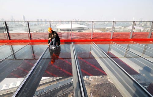 近日,上海世博會永久性標志建筑之一——中國館已進入內(nèi)部裝飾布展階段,頂層懸空觀光廊已建成亮相。1月21日,上海將迎來世博會開幕倒計時100天。