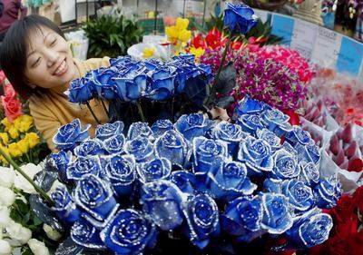北京花鄉花卉市場上的玫瑰新品――“藍色妖姬”(資料圖)