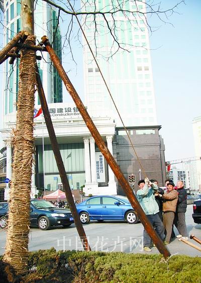 近日,武漢市江漢區園林局職工在漢口建設大道新華下路口安全島栽種了6株直徑30厘米的法桐樹。新年伊始,該區園林部門在馬場角、后襄河北路等5個路口的安全島栽種大規格法桐、銀杏樹24株,從而在該市率先完成了安全島綠化任務。