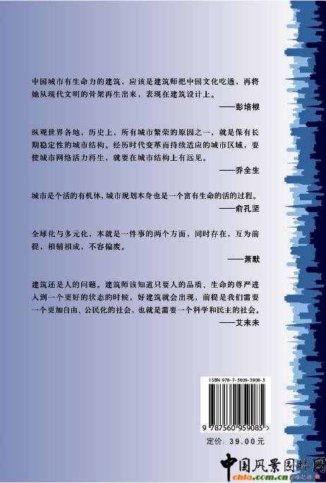 吳良鏞院士在不同的場合均表示要建設(shè)人居環(huán)境學(xué)科,需要風(fēng)景園林、建筑和城市規(guī)劃三位一體的聯(lián)系,因此,我們出版了這本關(guān)于反思城市問題的書籍,書籍里面共收錄了城市規(guī)劃界、建筑界、景觀界和媒體界中的知名專家關(guān)于城市相關(guān)問題的精辟評論,希望能夠從更多的方面和角度去闡述中國現(xiàn)在城市所面臨的問題,便于相關(guān)專業(yè)人士和普通大眾能有一個全面、深刻的了解。
