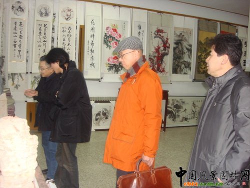 中國風(fēng)景園林網(wǎng)  14日上午,大雪覆蓋了整個北京植物園。日本千大學(xué)藤井英二郎教授在清華大學(xué)李樹華教授和千葉大學(xué)章俊華教授的陪同下考察了北京植物園盆景園。