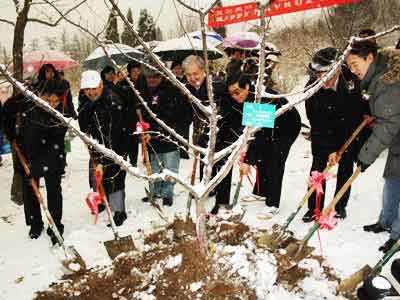 據介紹,2006年春天,塔吉克斯坦駐華大使阿利莫夫先生及索格特州州長卡西莫夫先生向北京農學院贈送了象征著中塔兩國及兩國人民傳統友誼的125棵杏樹苗。北京農學院廣大師生對樹苗進行了精心的呵護,積極申報苗木檢驗檢疫,專門為中塔友誼杏樹林修建了供植物檢疫用的溫室和大棚,安排專門的專業技術人員進行杏樹苗的管理,從整形修剪、土肥水管理、環境設施調控等方面開展研究工作,創造適合于杏樹發生長發育的環境條件。此外,還專門為塔吉克斯坦杏樹苗配置了授粉樹,改良了土壤,并建立了排灌系統,確保塔吉克斯坦杏樹苗能夠茁壯成長并結出理想的果實。為了促進中塔人民的交流合作更加廣泛深入,使中塔人民的友誼廣為傳頌,經過多方努力,北京農學院與塔吉克斯坦共同商議決定將部分樹苗移栽至向北京植物園、北京農學院5、6號公寓樓前廣場及北農科技園西區。