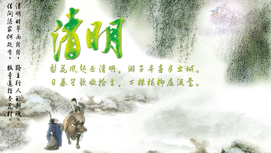 按照舊的習俗,掃墓時,人們要攜帶酒食果品、紙錢等物品到墓地,將食物供祭在親人墓前,再將紙錢焚化,為墳墓培上新土,折幾枝嫩綠的新枝插在墳上,然后叩頭行禮祭拜,最后吃掉酒食回家。唐代詩人杜牧的詩《清明》曰:"清明時節雨紛紛,路上行人欲斷魂。借問酒家何處有?牧童遙指杏花村。"寫出了清明節的特殊氣氛。直到今天,清明節祭拜祖先,悼念已逝的親人的習俗仍很盛行。