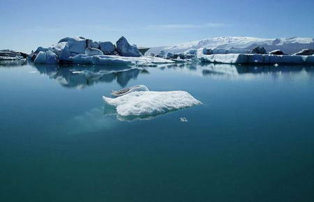 圖2:2002年所拍下的Breidamerkurjokull冰川和藍湖