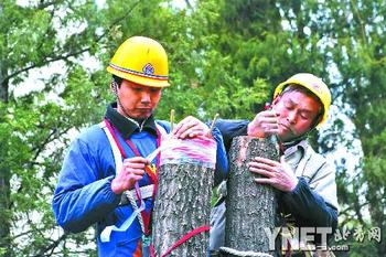 工作人員將雌性柳樹“斷頭”,然后嫁接雄性枝干