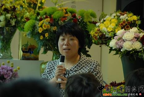 荷蘭黛麗芙(Deliflor)公司中國首席代表陳林女士首先在下午“荷蘭花店日”做了主題為“荷蘭黛麗芙切花菊在花藝作品中的應用”的報告。陳女士介紹了多頭菊在花藝作品中的色彩搭配,以及應用于禮品花束、婚禮、賓館、寫字樓等不同花藝作品中的構思。Deliflor公司此次攜50種菊花新品種參會,并計劃今年在中國推出16種菊花新品種,尤其引人關注的是,在6月份Deliflor威海基地將推出市場罕見的紅色菊花新品種。在會上,陳女士饒有興致地介紹了綠色的菊花品種,比如“綠安娜”品種,在全世界范圍內都深受花藝師熱捧,因為綠色是萬能色,而綠色的菊花在市場上也不多見。