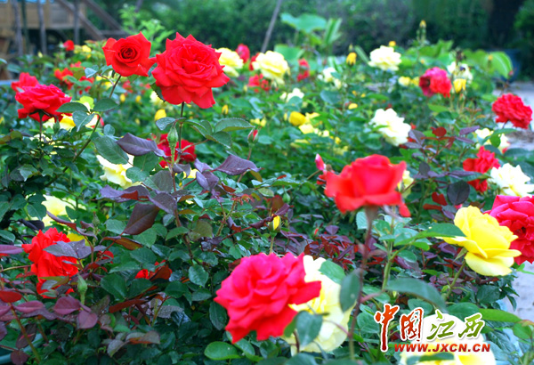 各類月季花絢麗奪目。(江西網記者 鄧小勇 攝)
