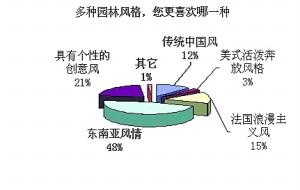 另外,東莞小區園林風格多樣,哪一種更受業主們的歡迎,在調查采訪中發現,48%的網友選擇了東南亞風情園林,21%的網友選擇富有創意的個性化園林,15%網友則選擇法式風情園林,另外12%的網友選擇中式園林,3%網友選擇美式園林,還有1%網友選擇其他。