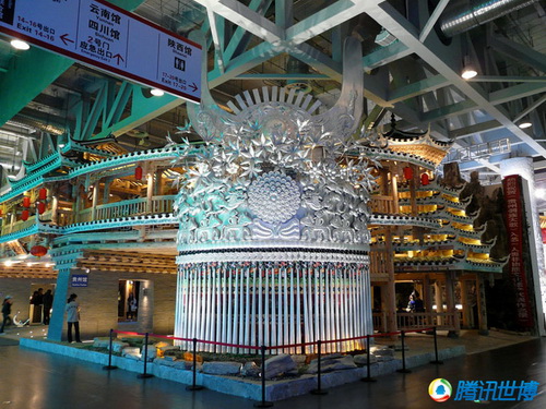 2010年4月29日,上海,世博會貴州館展示的巨大銀飾。