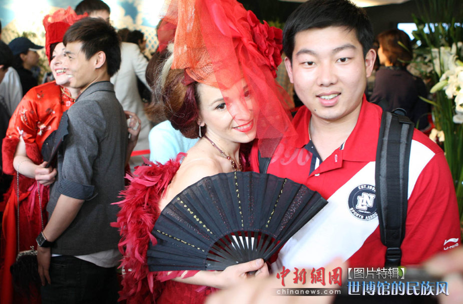 5月1日,上海世博會正式開園,在法國館內,美麗的法國少女熱情地接待著每一位進館參觀的游客。圖為法國美女與中國小伙“親密接觸”,盡顯法蘭西浪漫風情。