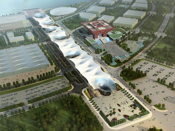 本次評選由中國生態建筑領域專家和法國羅納—阿爾卑斯大區的建筑學教授共同參與。世博軸全長1045米、寬約100米,是世博會園區空間景觀和人流交通的主軸線,也是園區內最大的單體項目,左右分別連接中國館、主題館、世博中心和文化中心。世博軸陽光谷的整個屋頂膜面長約843米、最寬處約97米,由69塊巨大的白色膜布拼裝組成,創造了“世界索膜結構之最”。6個圓錐型“陽光谷”如同6朵盛開的“鮮花”,隨意“飄落”在世博軸上。建工集團攻克了6個圓錐型“陽光谷”不規則鋼結構節點安裝和超大面積索膜安裝的世界級難題,終于使設計師的藍圖變成了現實,建成了這座生態建筑。