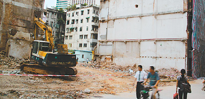拆,拆。廣州西湖路的騎樓已被拆掉大半