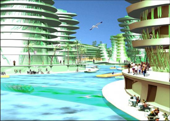 根據荷蘭科學家的設計藍圖,這座人工島的風景將會和意大利水城威尼斯非常相似,而該島接收的首批居民將可能是那些“氣候難民”。