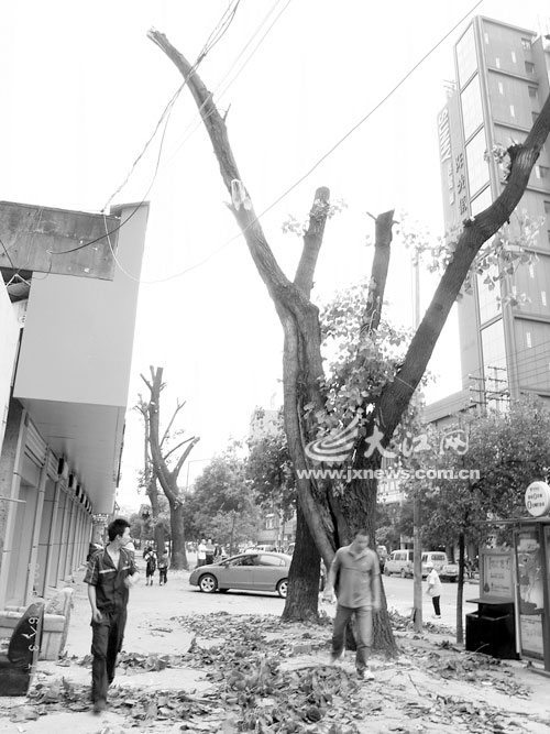2010年6月3日,南昌市二七北路人行道上4棵近30米高的楊樹被東湖園林以修剪的名義“剃頭”近20米。原本枝繁茂的大樹幾乎只剩下樹干,其中一棵大樹更是片葉未留。