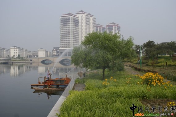 中國風景園林網 臨沂市園林局一線技術人員結合工作實際,經過進行精心改造,多次試驗,改造成功這種多功能綠化養護平臺。它的使用,可以節省資源,大大提高養護效率。該平臺廢舊利用手扶拖拉機發動機、浮桶、水泵、高壓水槍等改造而成,集澆水、注水、打撈水面垃圾、割于一體,其中噴水距離最遠可達15米,而且噴水距離可以調節。