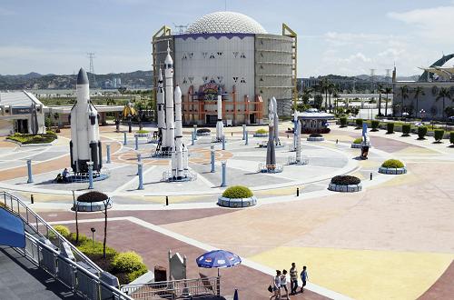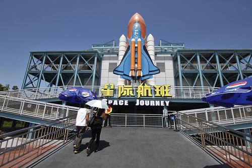 藍水星樂園以航空航天技術為主題的“太空世界”景點(7月10日攝)。(郭海 攝)