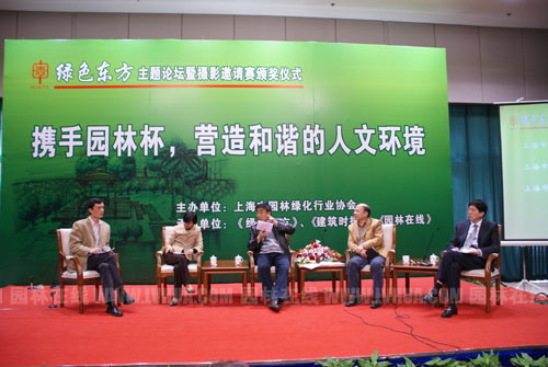 最后,由上海市綠委辦秘書處處長高級工程師李莉、上海園林設(shè)計院副總工、高級工程師范善華、上海華潤投資發(fā)展有限公司總經(jīng)理陸德潤、文匯報高級記者洪崇恩、《園林在線》副總經(jīng)理翁靈巍等五位嘉賓在臺上就園林建設(shè)認知誤區(qū) 、當(dāng)前建設(shè)與管理中的矛盾、建設(shè)方希望政府提供的技術(shù)或政策標(biāo)準上的支持、如何合理有效地投資景觀建設(shè)展開討論,并和臺下觀眾進行問答式溝通,為業(yè)界如何實現(xiàn)“設(shè)計——施工——生產(chǎn)”提供了良好的互動平臺。